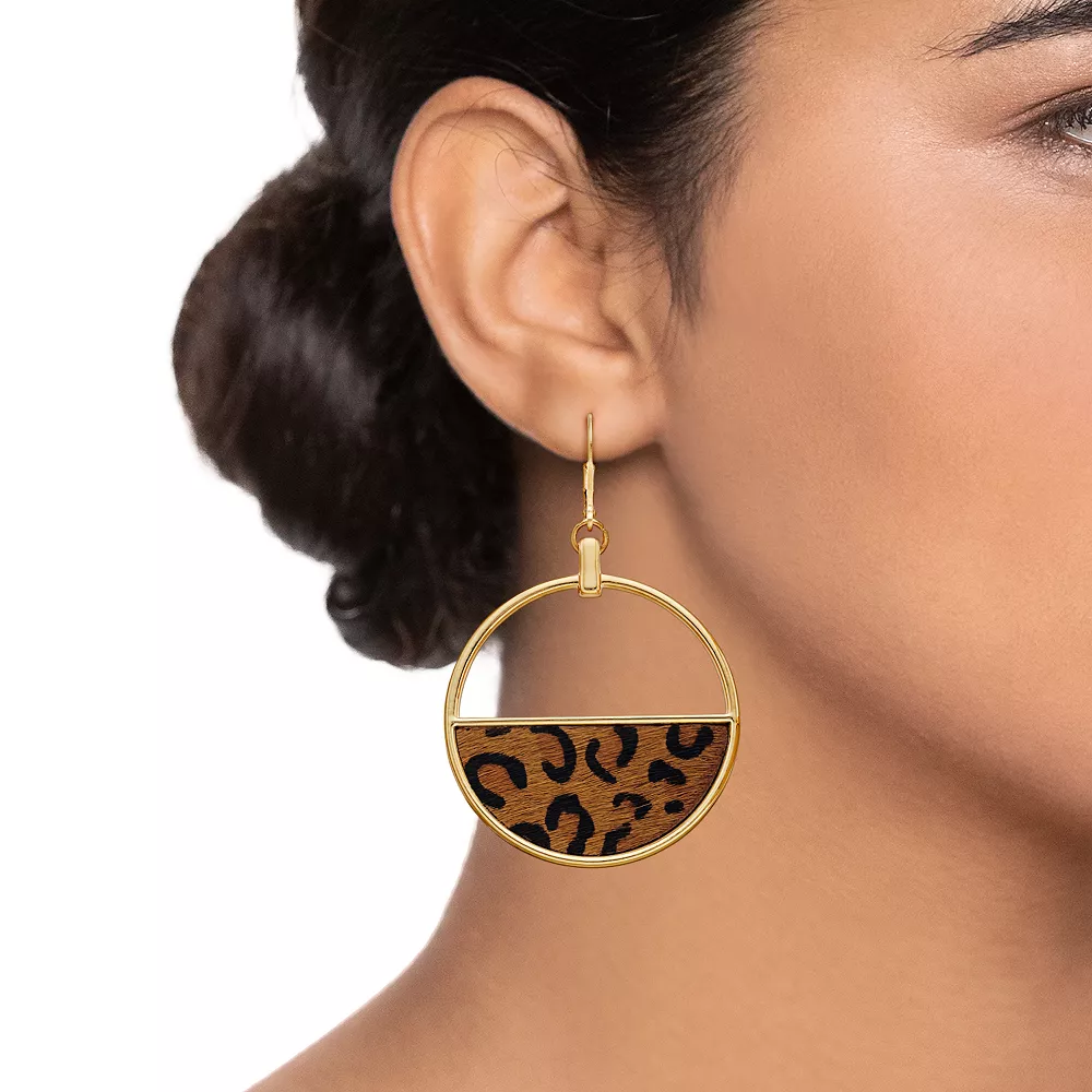 Take a walk on the wild side with these animal-print hoop drop earrings.