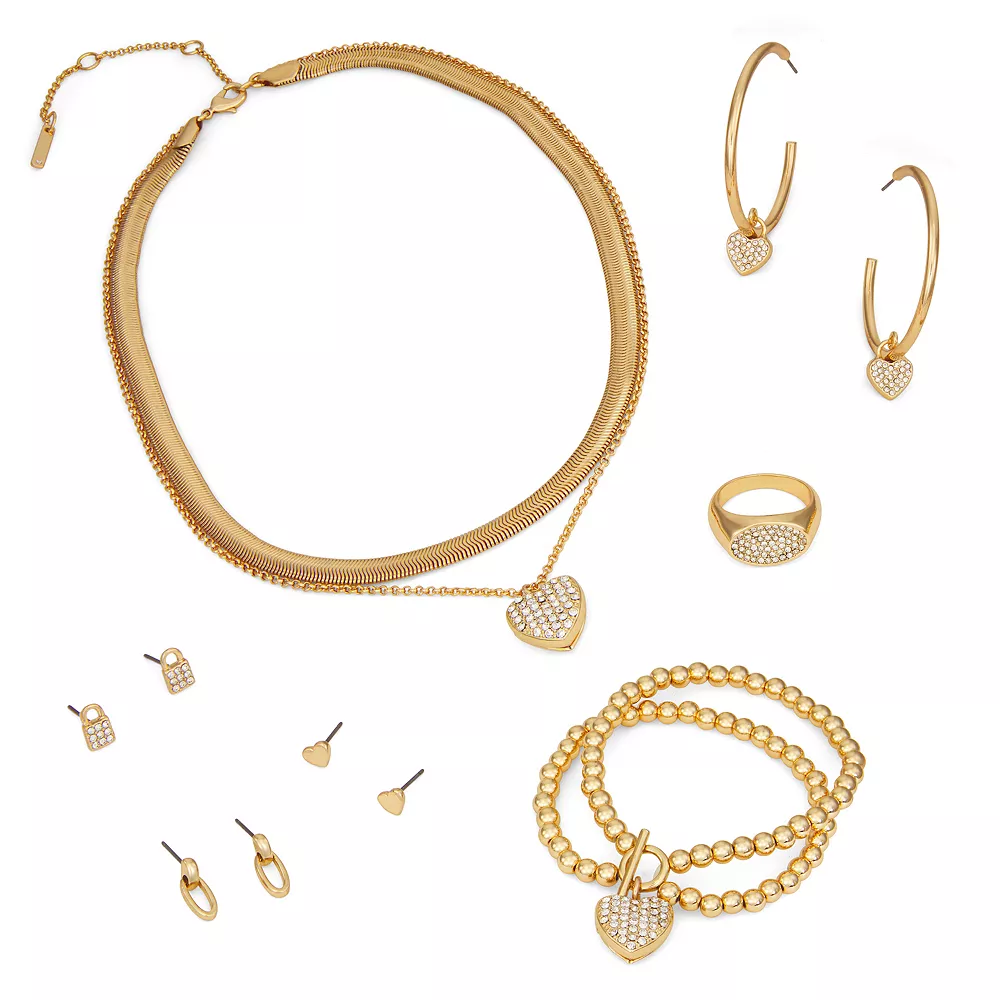 Feel fancy and fun when you wear this Nine West Gold Tone Heart Locket Stretch Bracelet.