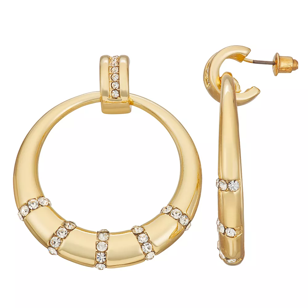 Add a touch of sparkle to your favorite attire with these Nine West gold tone hoop earrings.
