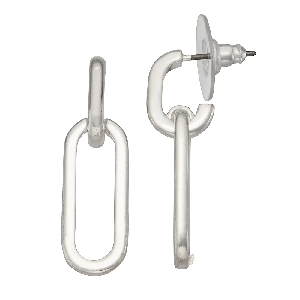 Form and function beautifully meet with these Nine West Silver Tone Drop-Off Hoop Earrings.