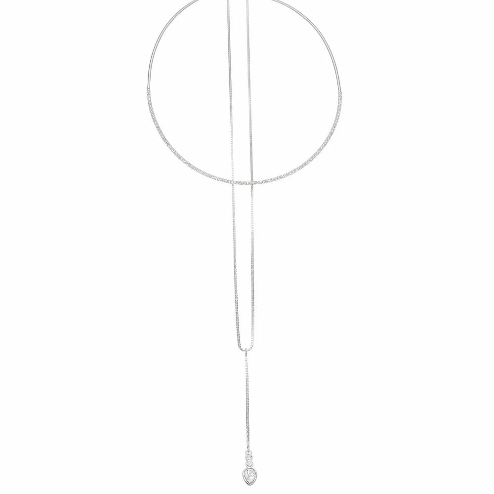 Add shape and shimmer to your look with this Nine West Silver Tone Simulated Crystal Multirow Necklace.