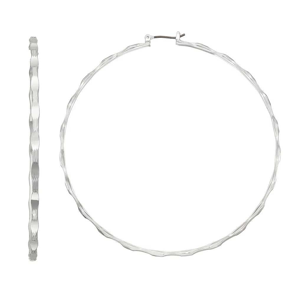 You will love the simply unique design of these silver tone textured hoop earrings by Nine West.
