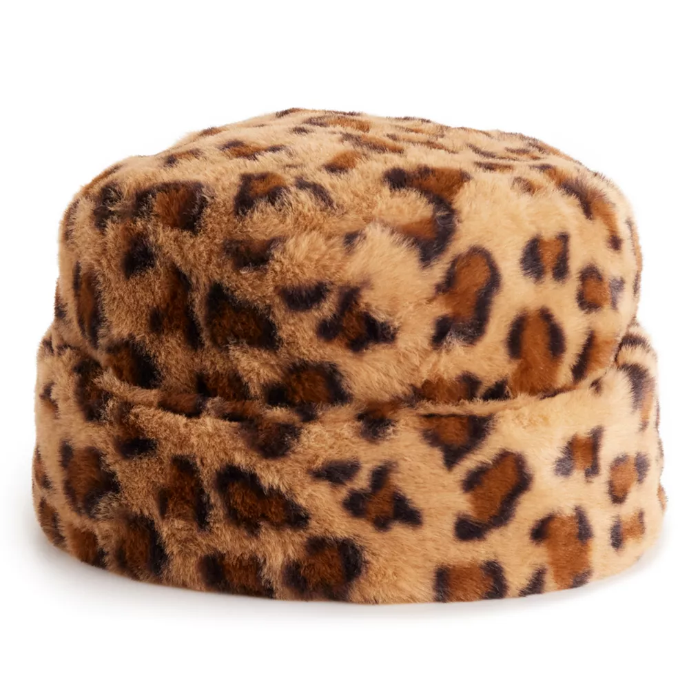 Let your wild side shine in this women’s faux fur leopard print cloche hat from Nine West.