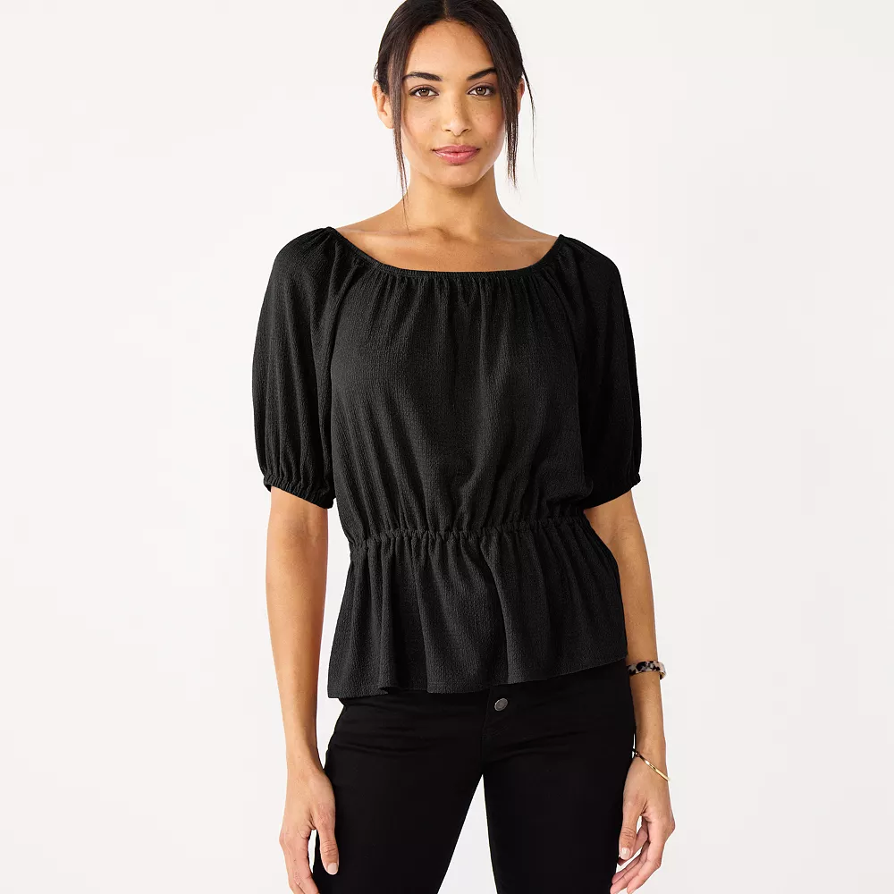Keep your look boho and breezy in this women’s puff sleeve peplum top from Nine West.